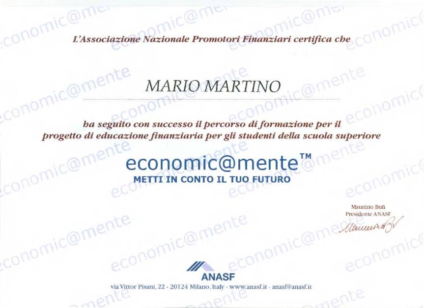 Realizzato da Anasf in collaborazione con la società Progetica, Economic@mente™ – Metti in conto il tuo futuro è un progetto di educazione finanziaria per gli studenti della scuola superiore, per formare gli investitori di domani.