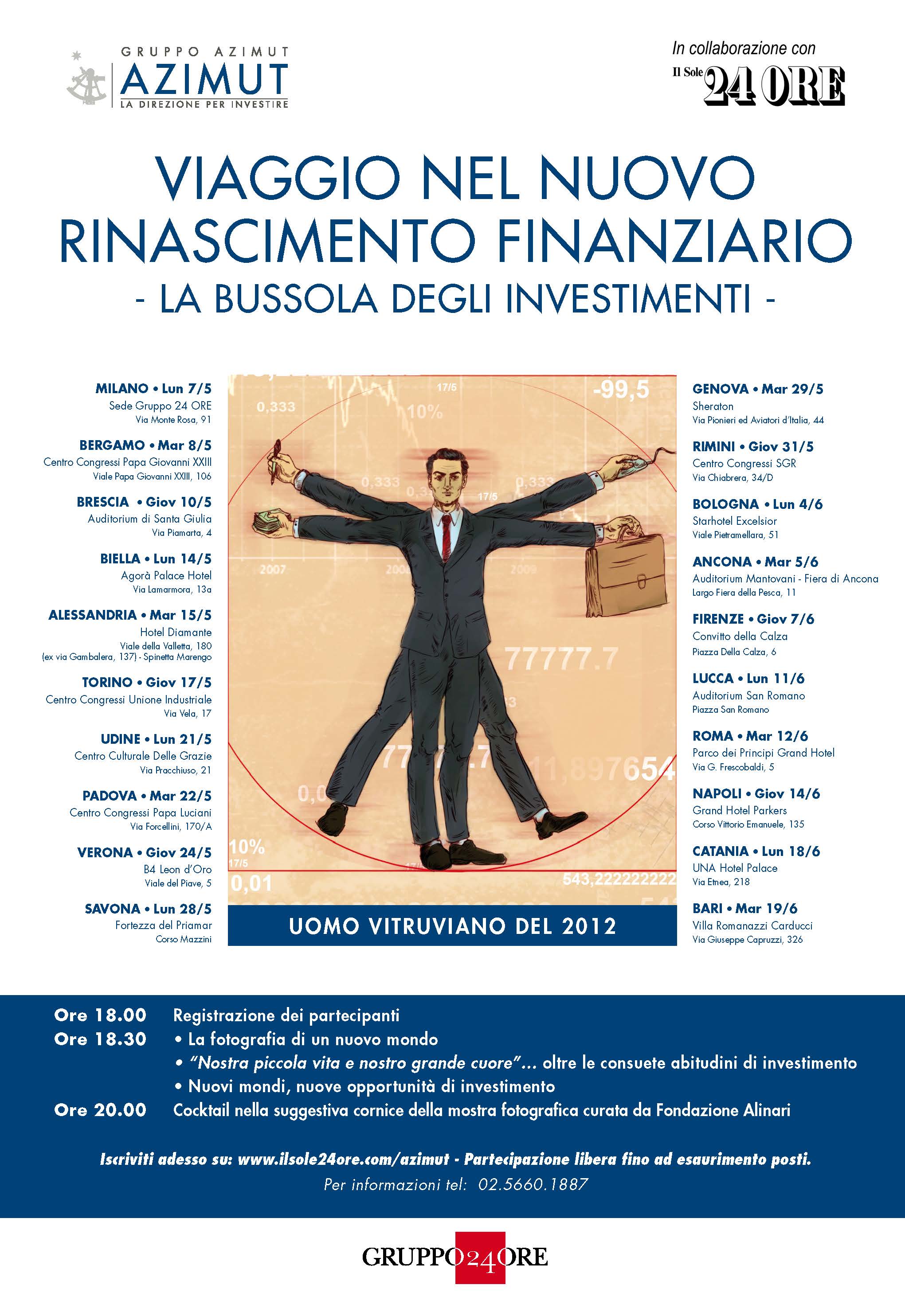 Dal 7 maggio al 19 giugno si svolge un Road Show di Azimut in collaborazione con Il Sole 24 Ore.
