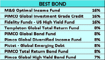 Son entrati i fondi Fidelity US High Yield, M&G Optimal Income, Pictet Global Emerging Debt e Pimco Global High Yield. Escono BNP Bond World Emergin Local, JPM Emerging Local Currency Debt, Pimco Emerging Local Bond e Templeton Global Bond.