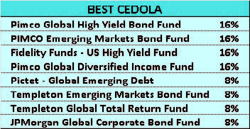 Entrano i fondi Fidelity US High Hield, Pimco Global High Yield, Pictet Global Emerging Market Debt e Templeton Emerging Market Bond. Escono BNP Bond World Emerging Local, JPM Emerging Local Currency Debt, JPM Us Aggregate Bond, Schroder Global Corporate Bond, Templeton Asian Bond e Templeton Global Bond.