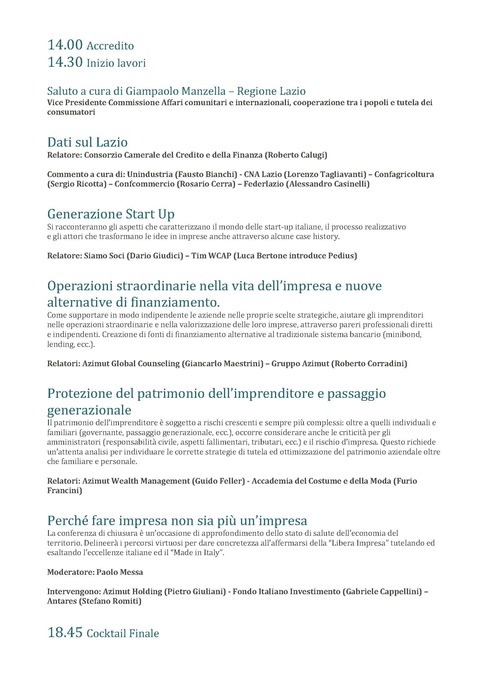 Azimut Libera Impresa Roma – Programma e partecipanti