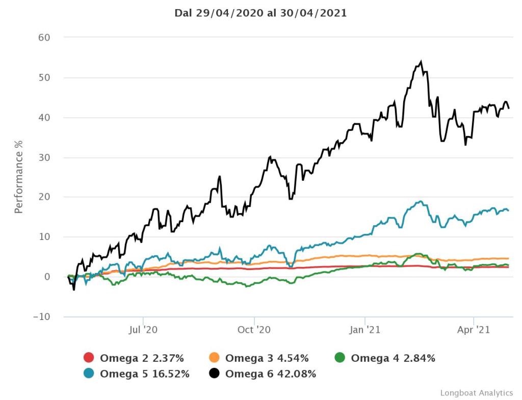| Omega 5 | 16,96% | 16,96% | 9.0707 | -5.4700% | 1.3468 |