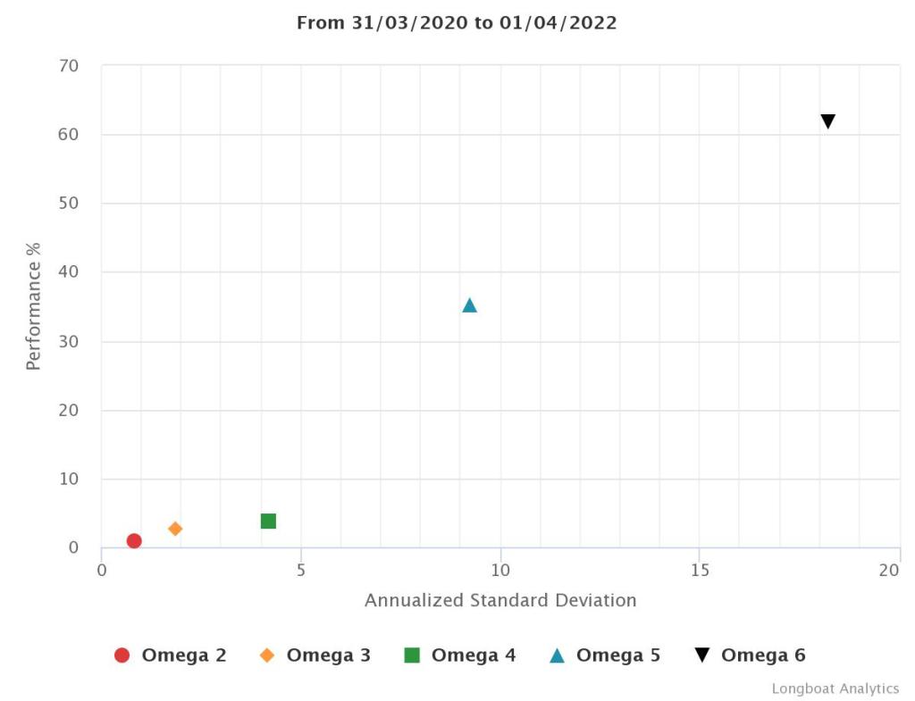 | Omega 4 | 3,67% | 1,82% | 4,1911 | -6,4116% | 1,0810 |