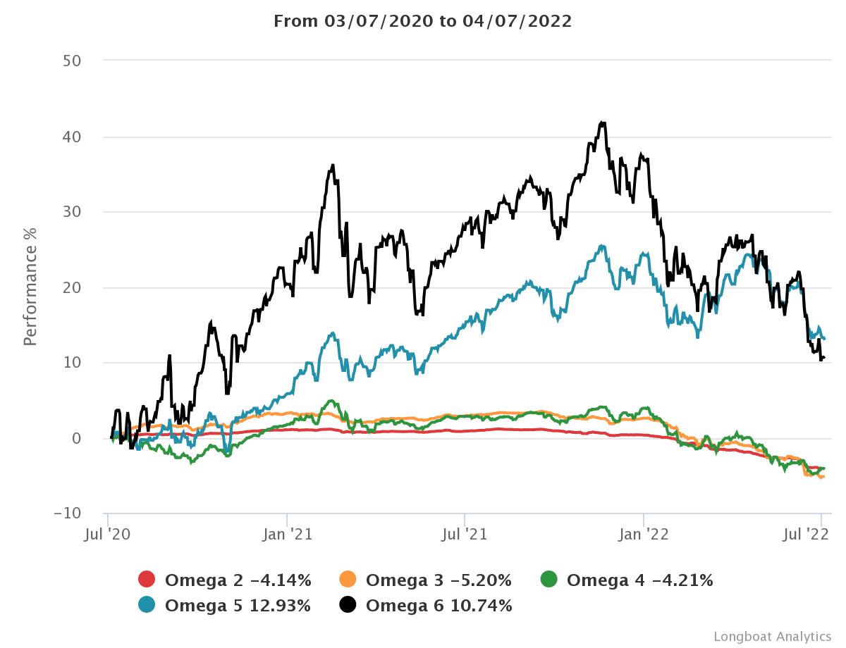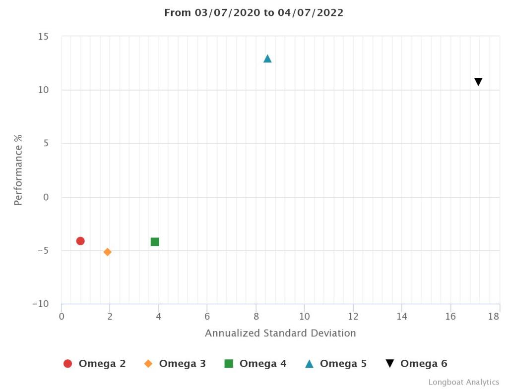 | Omega 4 | -4,21% | -2,13% | 3,8548 | -9,2826% | 0,9122 |