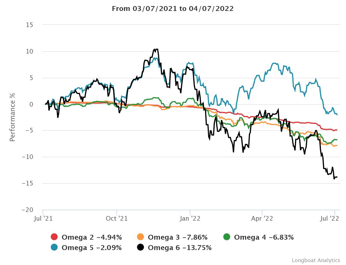 | Omega 4 | -6,83% | -6,81% | 3,7505 | -8,5729% | 0,7253 |