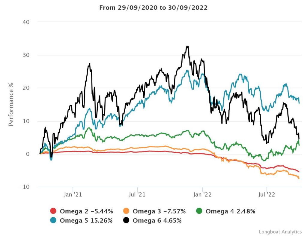 | Omega 3 | -7,57% | -3,85% | 2,0194 | -9,6266% | 0,6822 |
