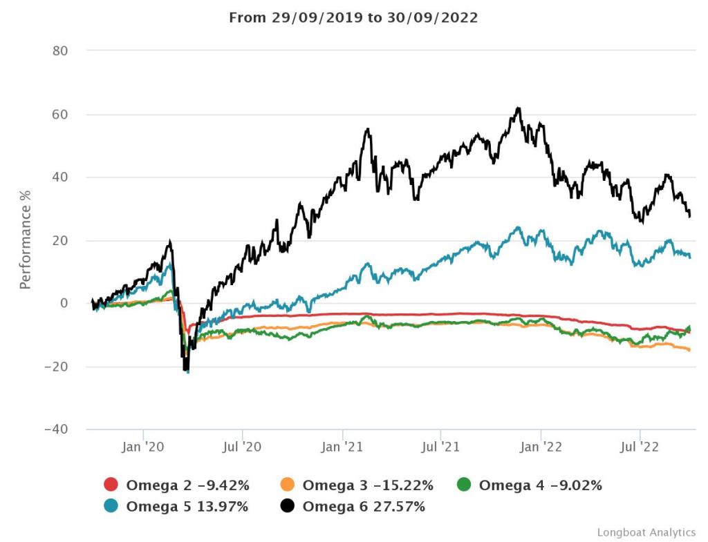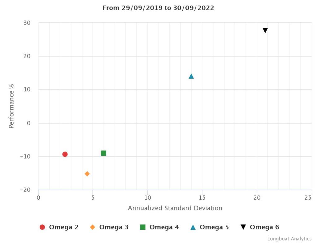 | Omega 4 | -9,02% | -3,10% | 5,9531 | -18,6986% | 0,9056 |