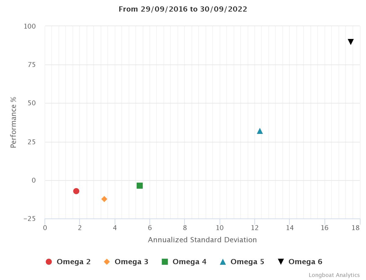 | Omega 5 | 31,85% | 4,71% | 12,3123 | -30,7982% | 1,0891 |