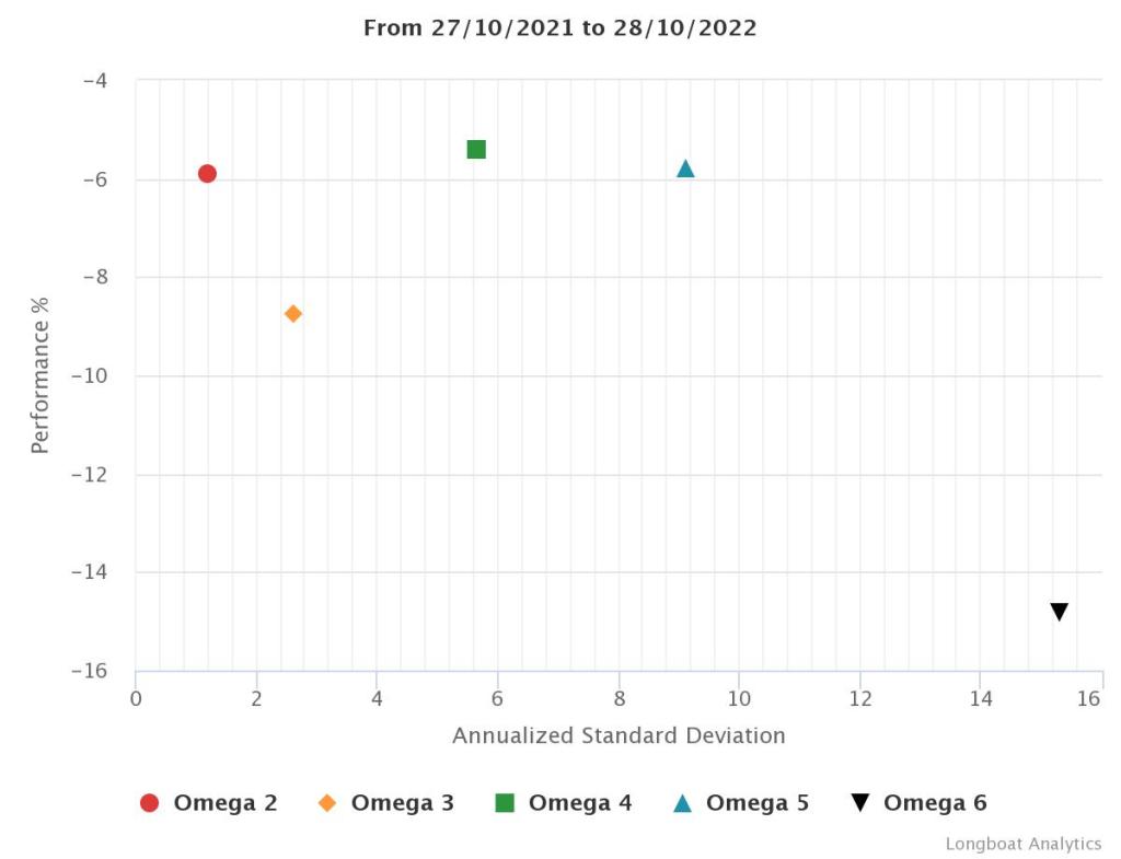 | Omega 4 | -5,42% | -5,41% | 5,6360 | -8,5729% | 0,8489 |