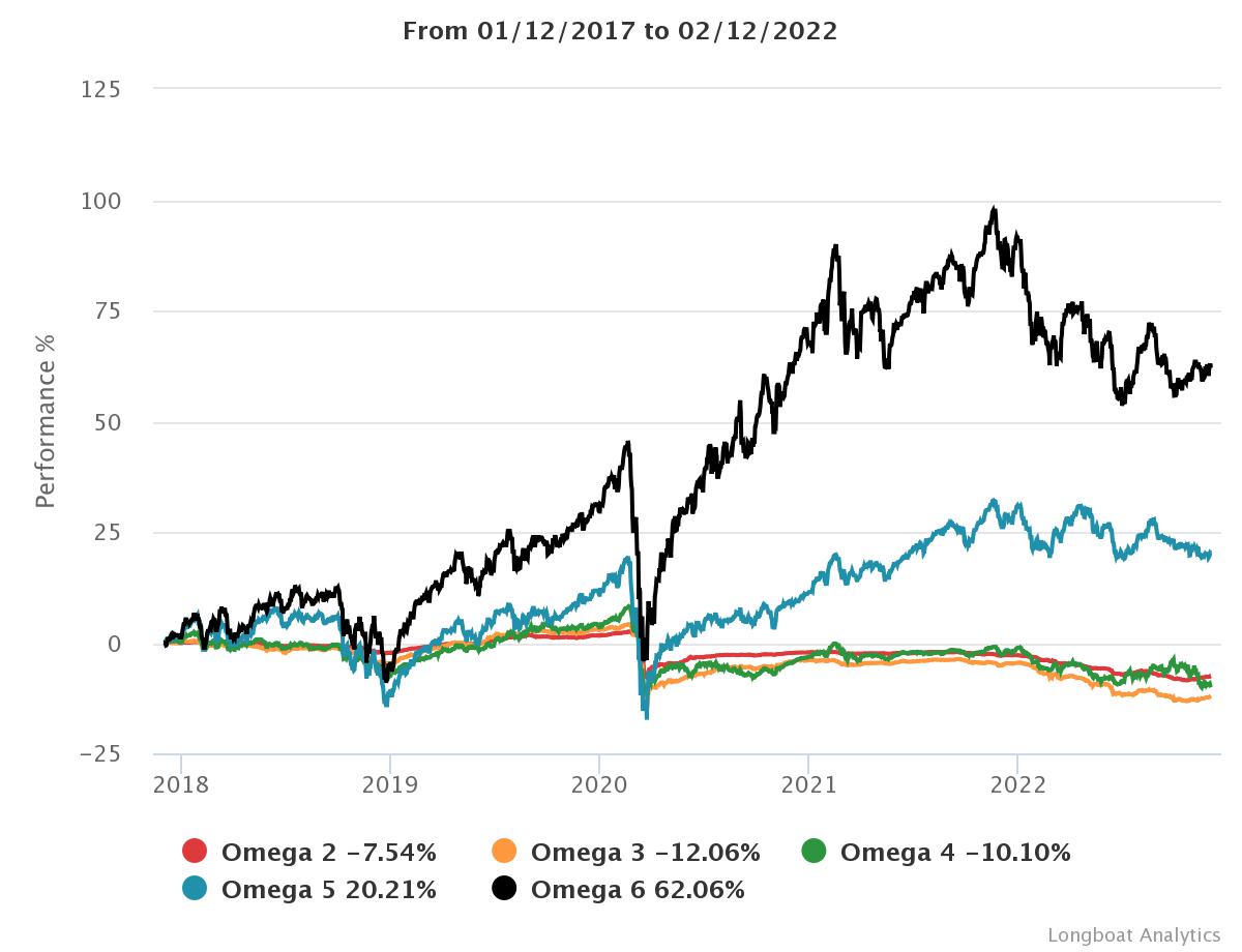 | Omega 6 | 62,06% | 10,13% | 18,6084 | -34,1986% | 1,1190 |