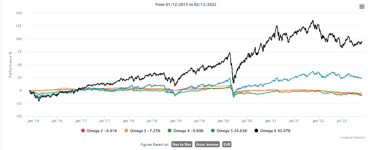 | Omega 6 | 93,07% | 9,85% | 17,0347 | -34,1986% | 1,1239 |