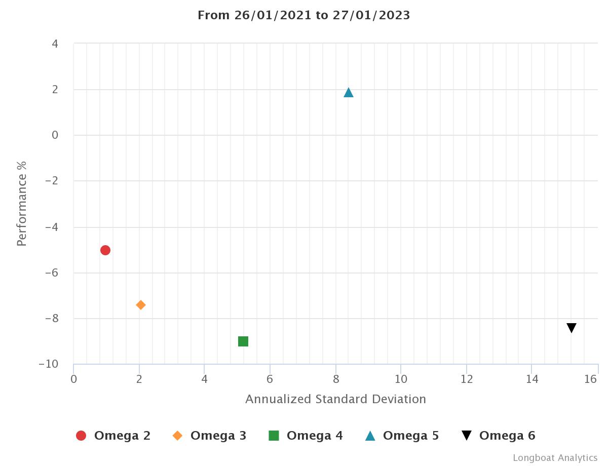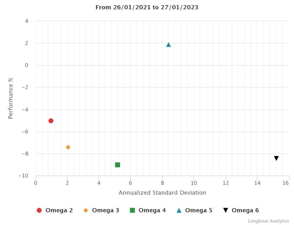| Omega 6 | -8,47% | -4,32% | 15,2029 | -22,2951% | 0,9648 |