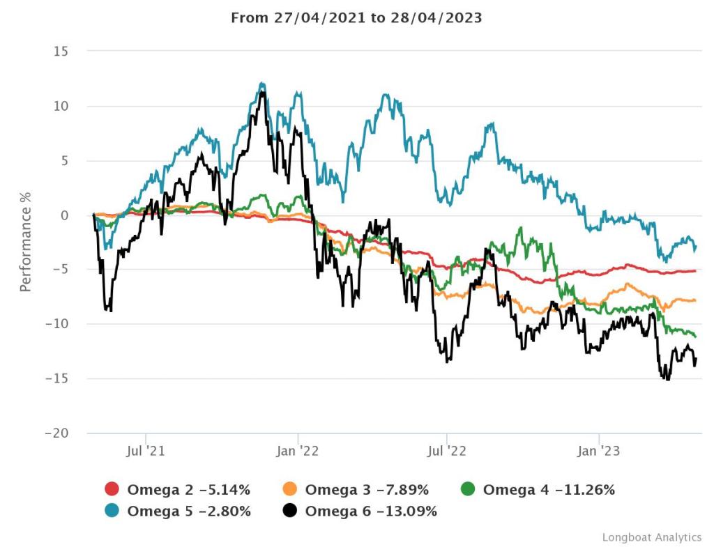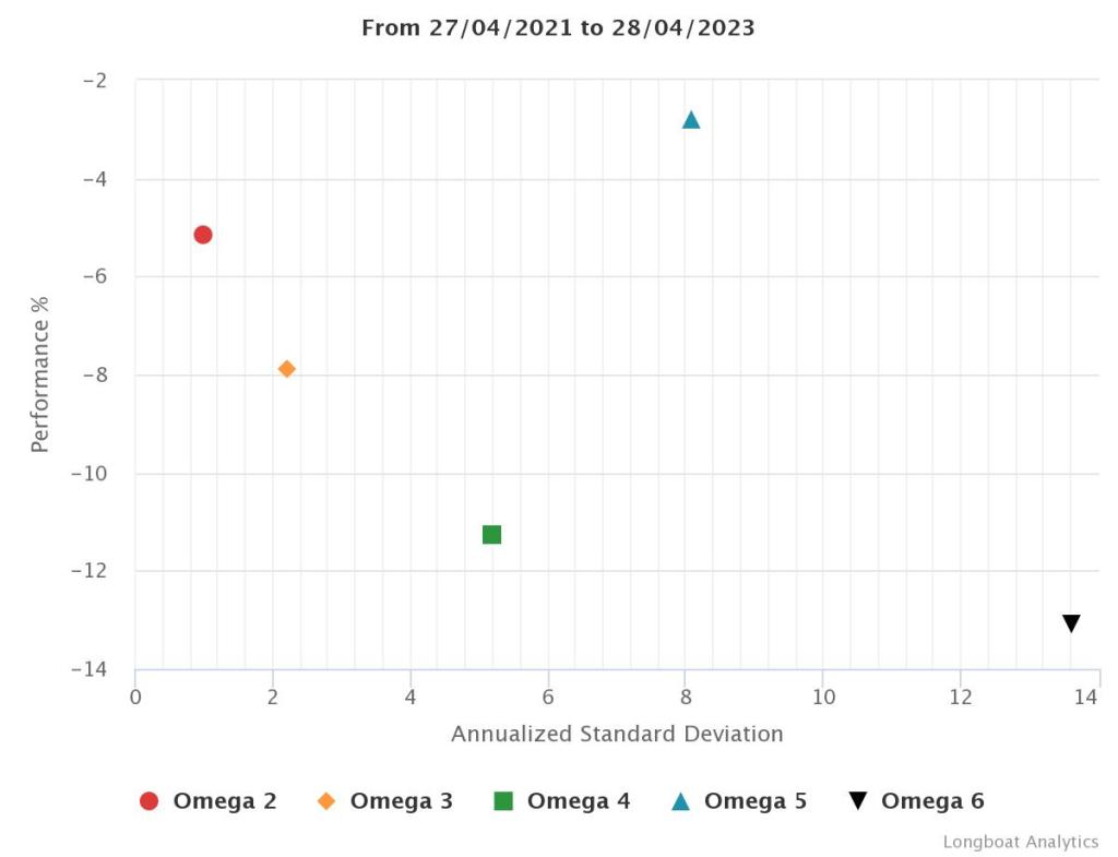 | Omega 4 | -11.26% | -5.79% | 5.1837 | -12.7497% | 0.8091 |