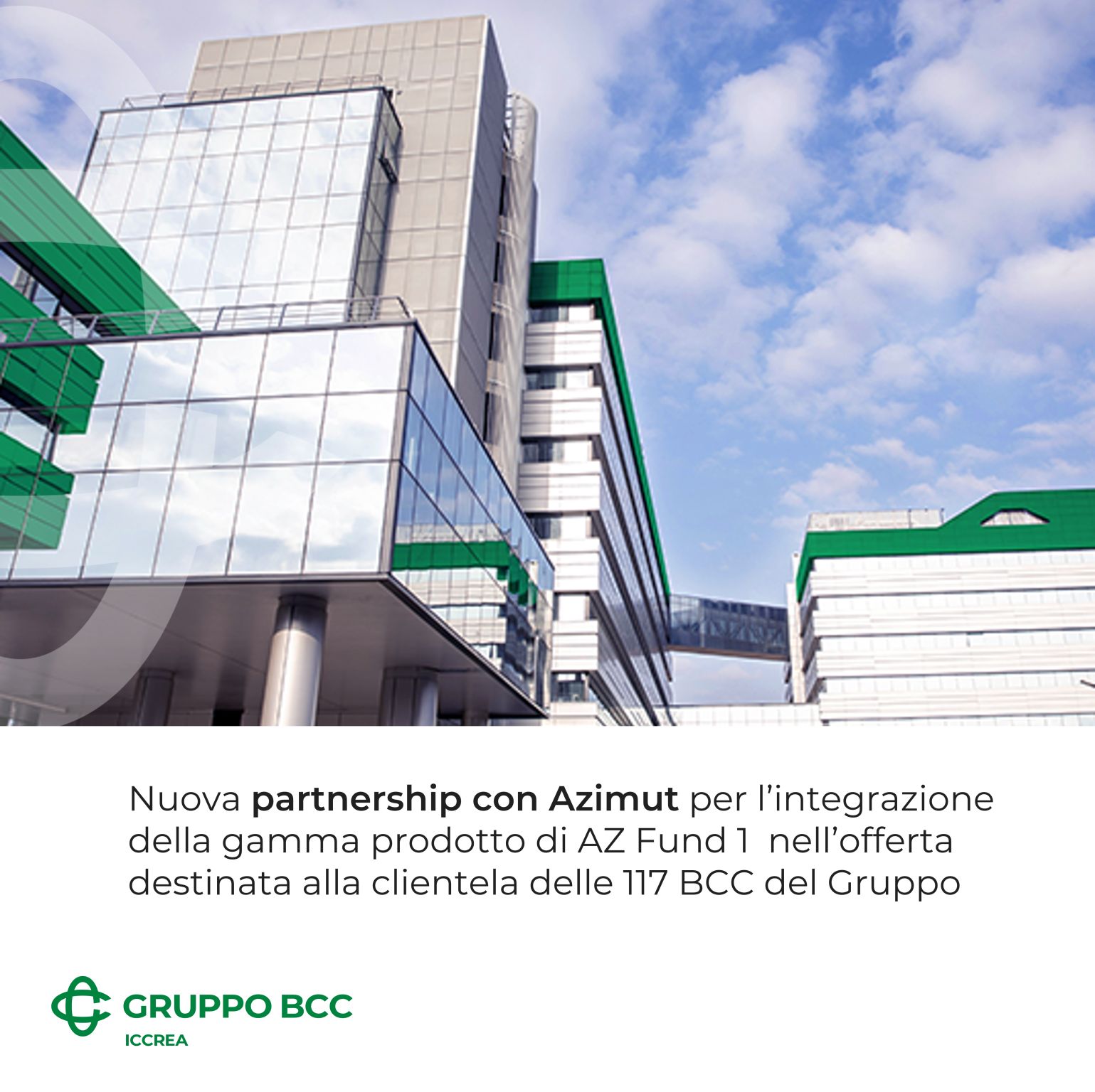 Grazie a questo accordo, BCC Risparmio&Previdenza amplierà ulteriormente le soluzioni di investimento rivolte a soci e clienti delle BCC, attraverso gli oltre 80 comparti del fondo multicomparto AZ Fund 1, istituito dalla piattaforma lussemburghese Azimut Investments del Gruppo Azimut e caratterizzato dalla gestione di strategie altamente innovative, che coprono molteplici asset class di investimento offrendo soluzioni differenziate in funzione delle diverse esigenze dei sottoscrittori.