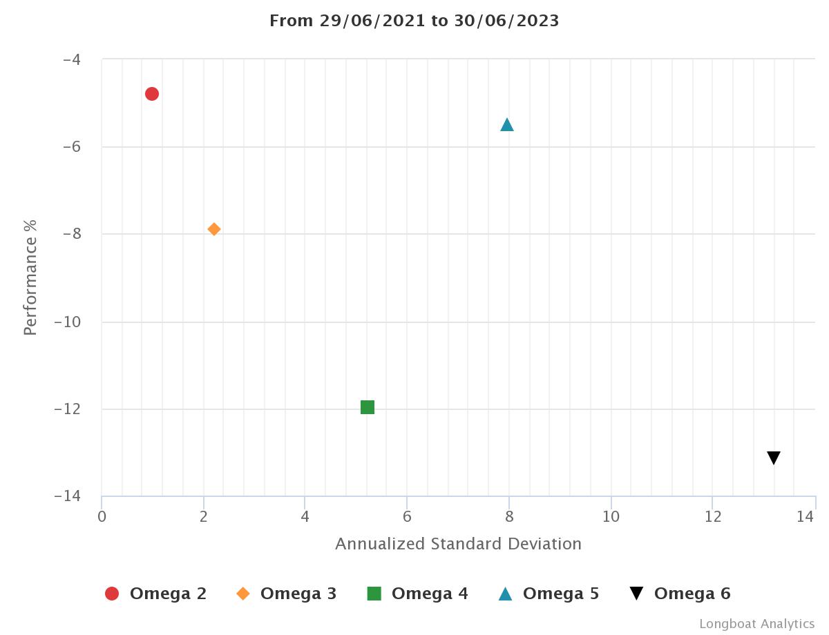 | Omega 6 | -13.15% | -6.81% | 13.2093 | -23.6615% | 0.9261 |