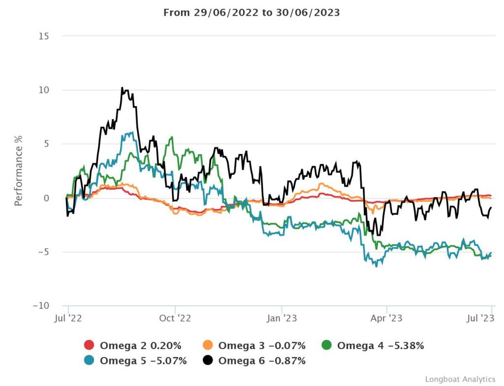 | Omega 3 | -0.07% | -0.07% | 2.0588 | -2.9317% | 0.9957 |