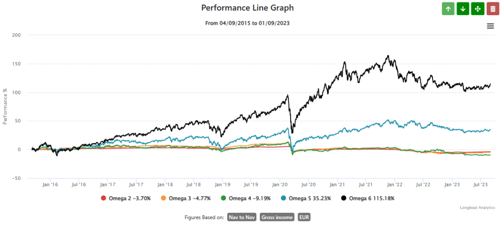 | Omega 6 | 115.18% | 10.06% | 16.4453 | -34.1986% | 1.1295 |