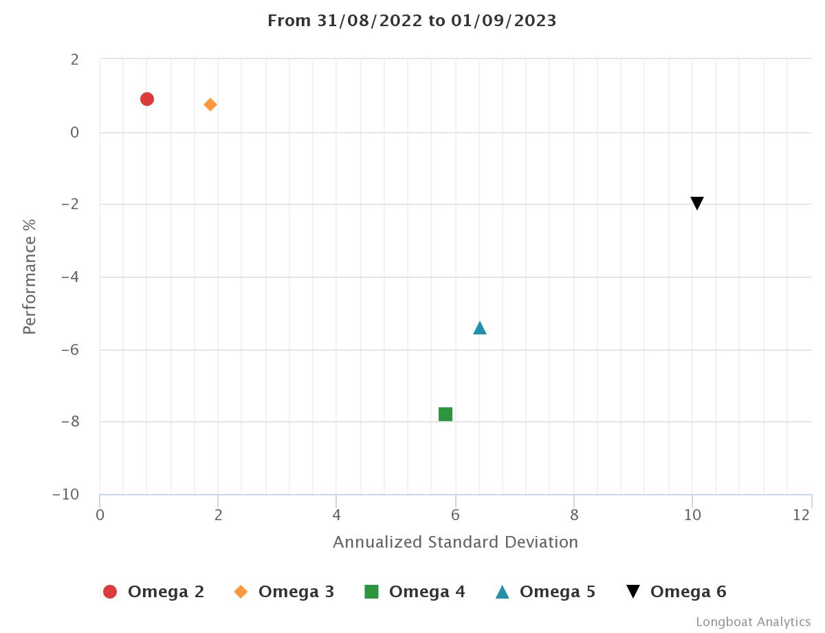 | Omega 5 | -5.39% | -5.39% | 6.4123 | -9.4142% | 0.8709 |