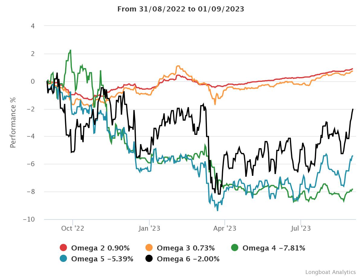 | Omega 3 | 0.73% | 0.73% | 1.8816 | -2.7934% | 1.0752 |