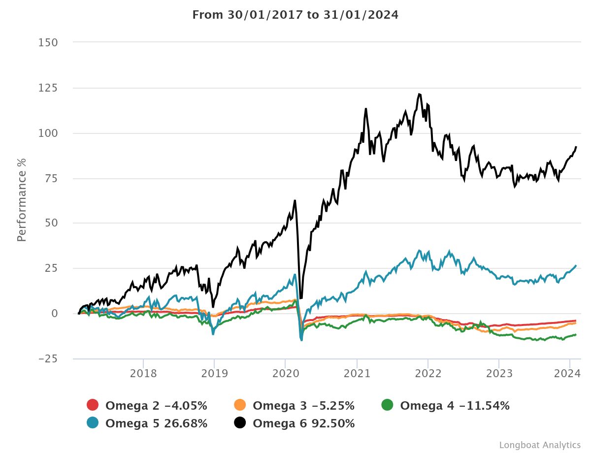 | Omega 6 | 92.01% | 9.76% | 18.0336 | -33.4504% | 1.2704 |