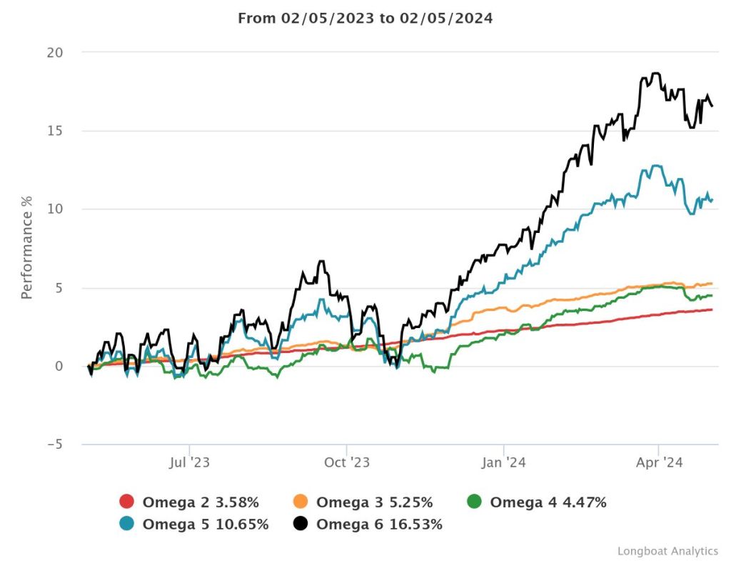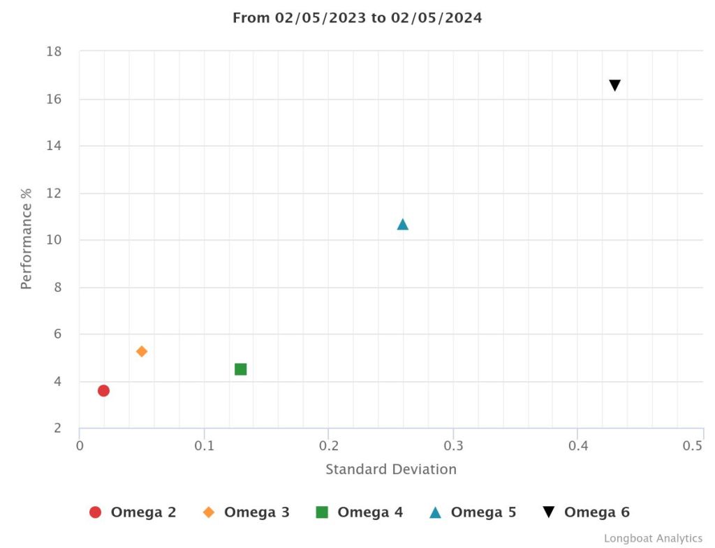 | Omega 5 | 10.65% | 10.65% | 4.8760 | -4.1979% | 1.3925 |