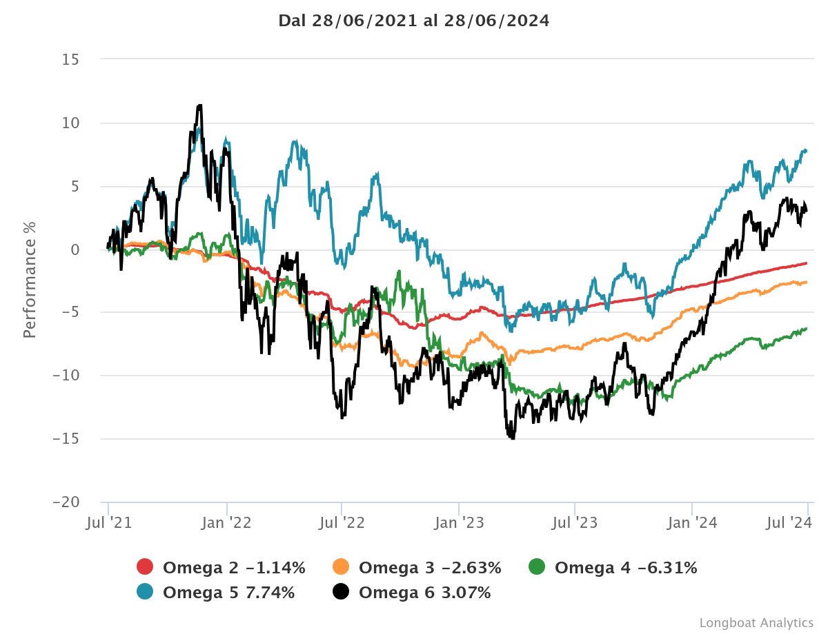 | Omega 4 | -6.31% | -2.15% | 4.4645 | -13.3142% | 0.9142 |