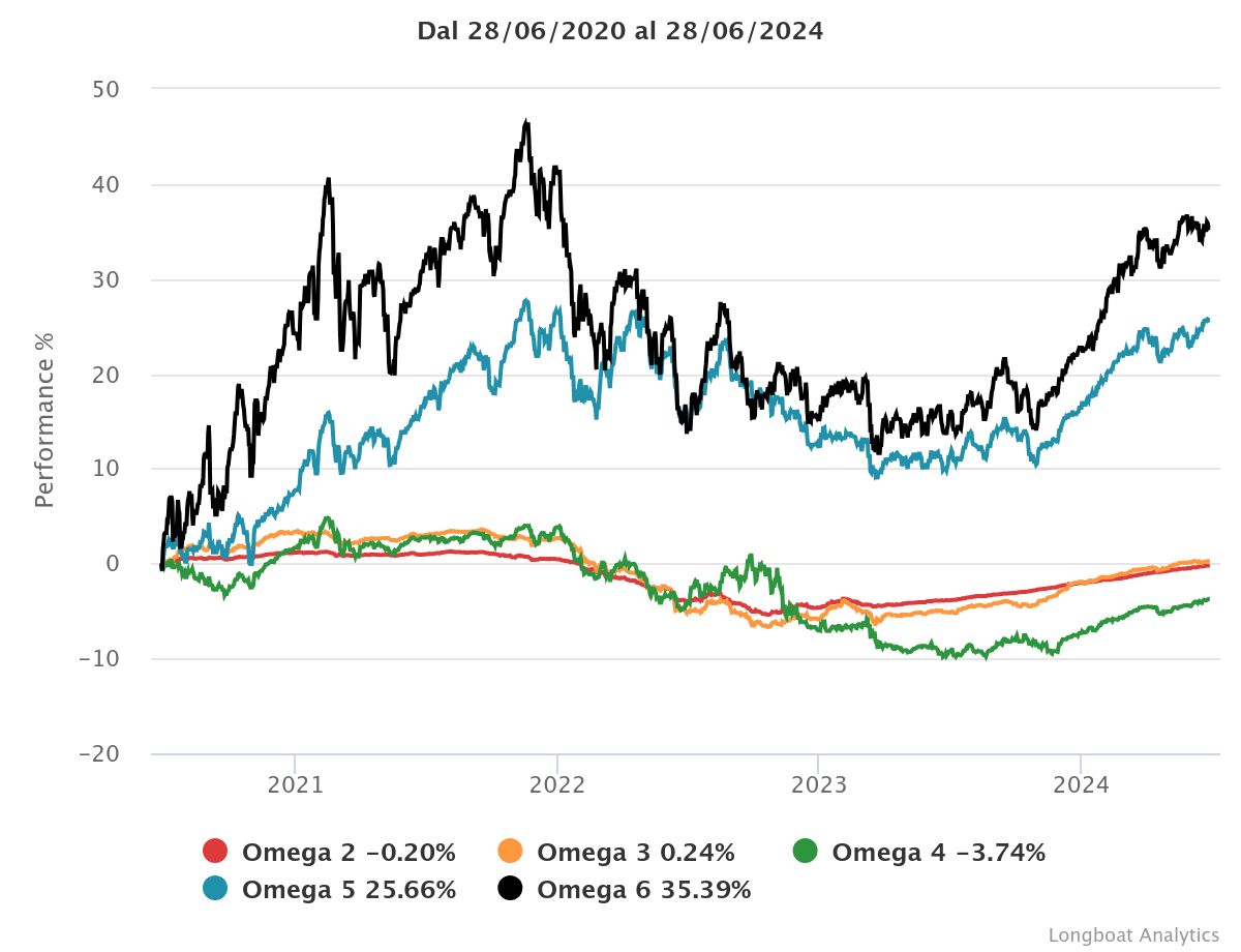 | Omega 4 | -3.74% | -0.95% | 4.3624 | -13.9871% | 0.9639 |