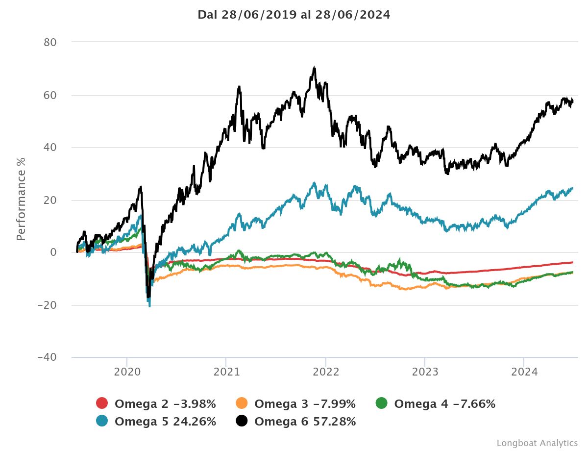 | Omega 5 | 24.26% | 4.44% | 11.5591 | -30.7982% | 1.0968 |