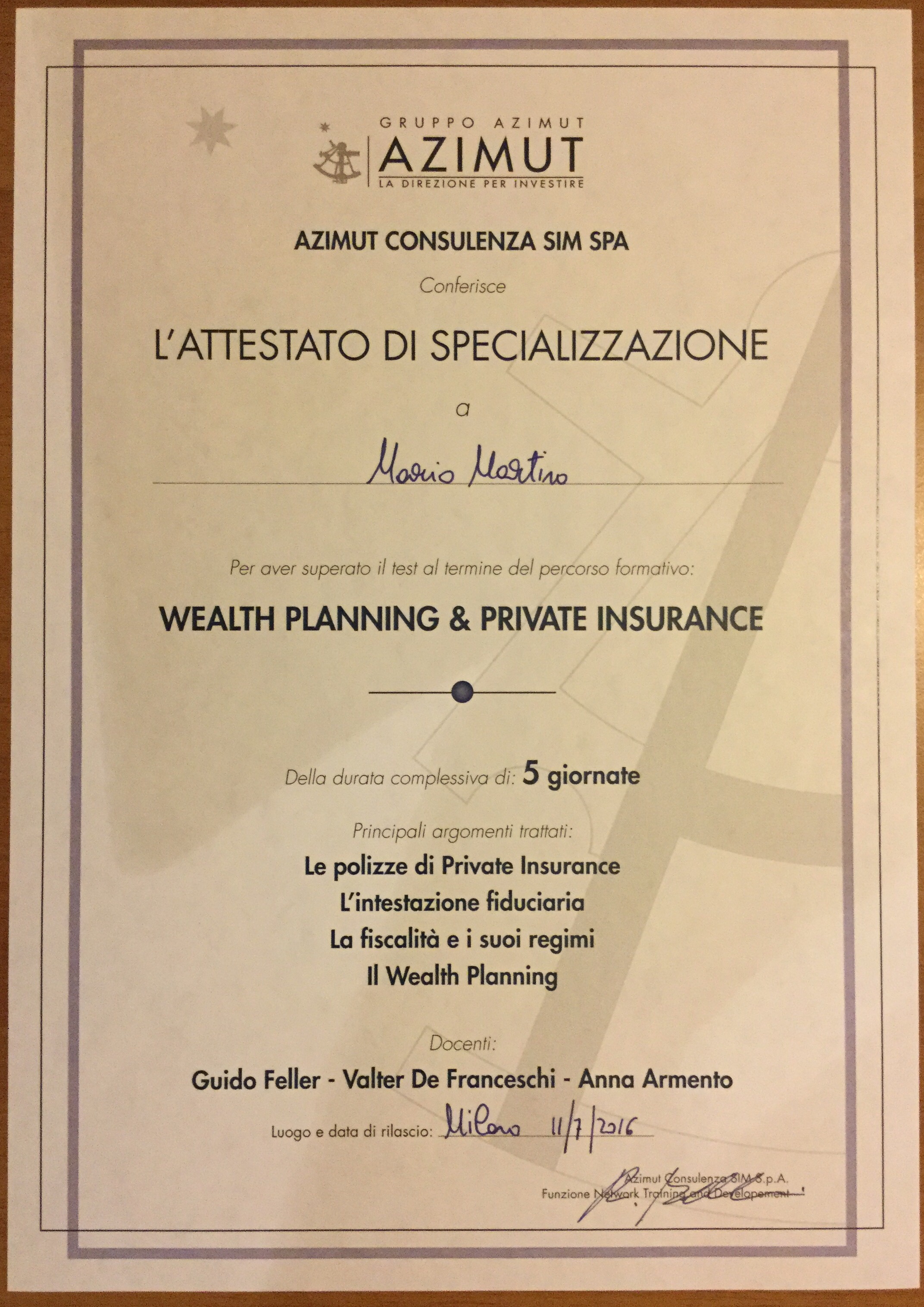 AZ Life dispersione al 1° luglio 2016