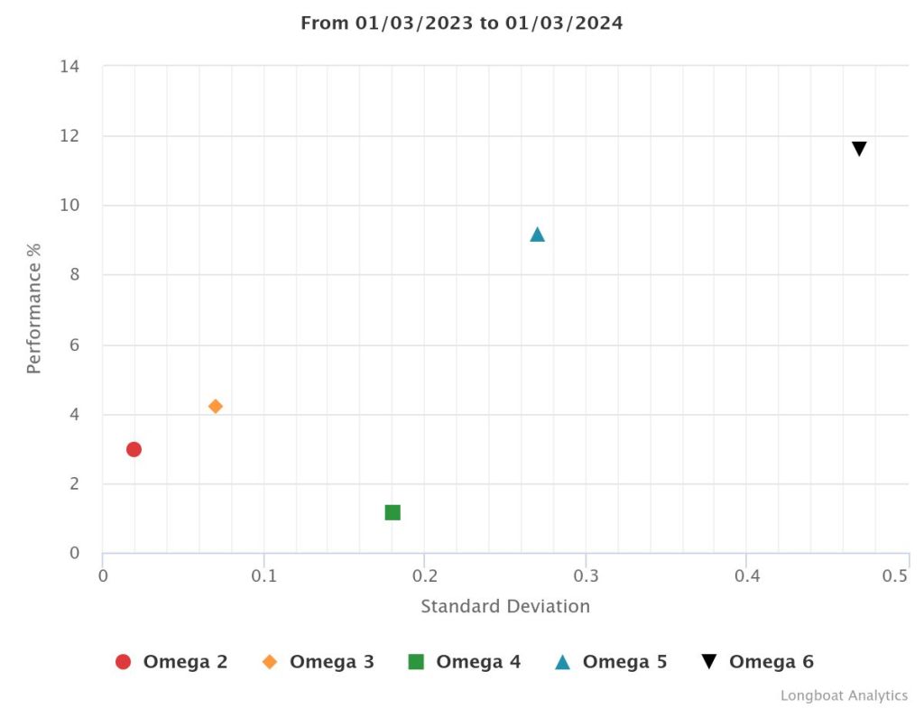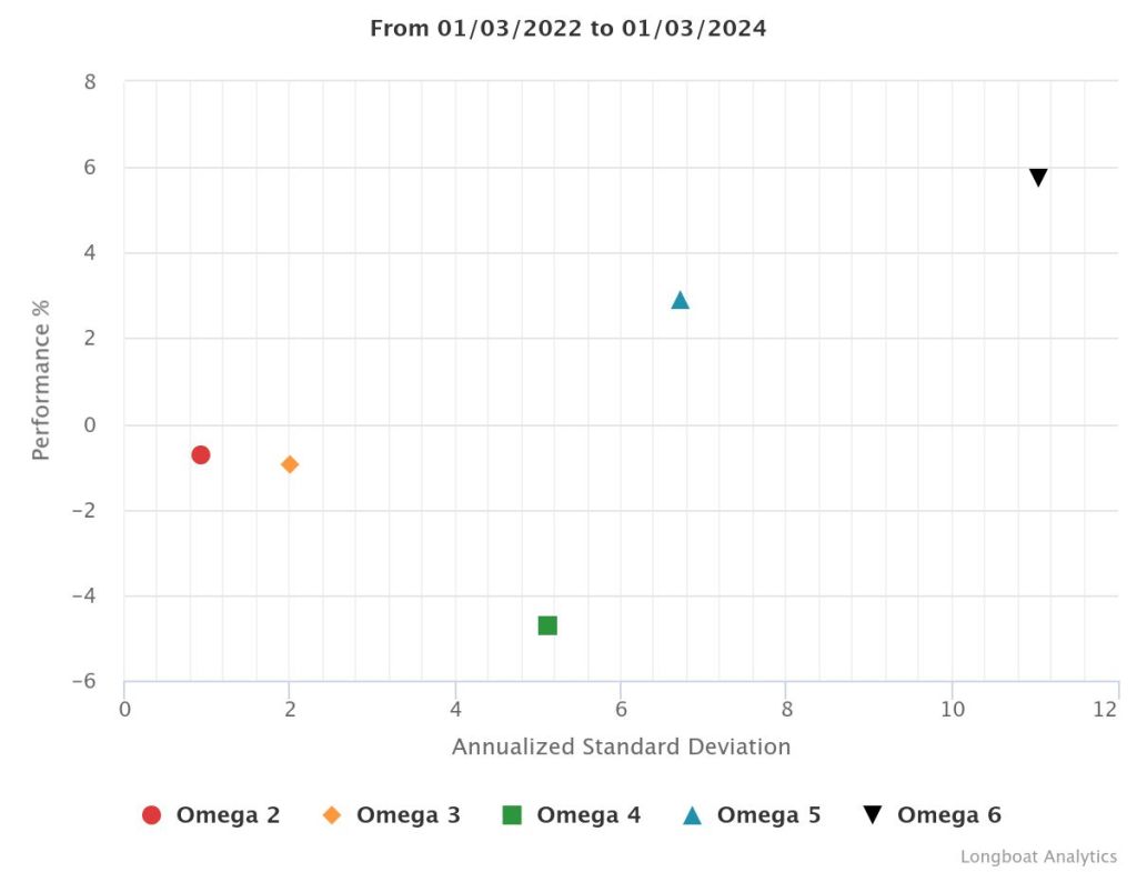 | Omega 5 | 8.74% | 2.83% | 7.2633 | -14.7126% | 1.0724 |