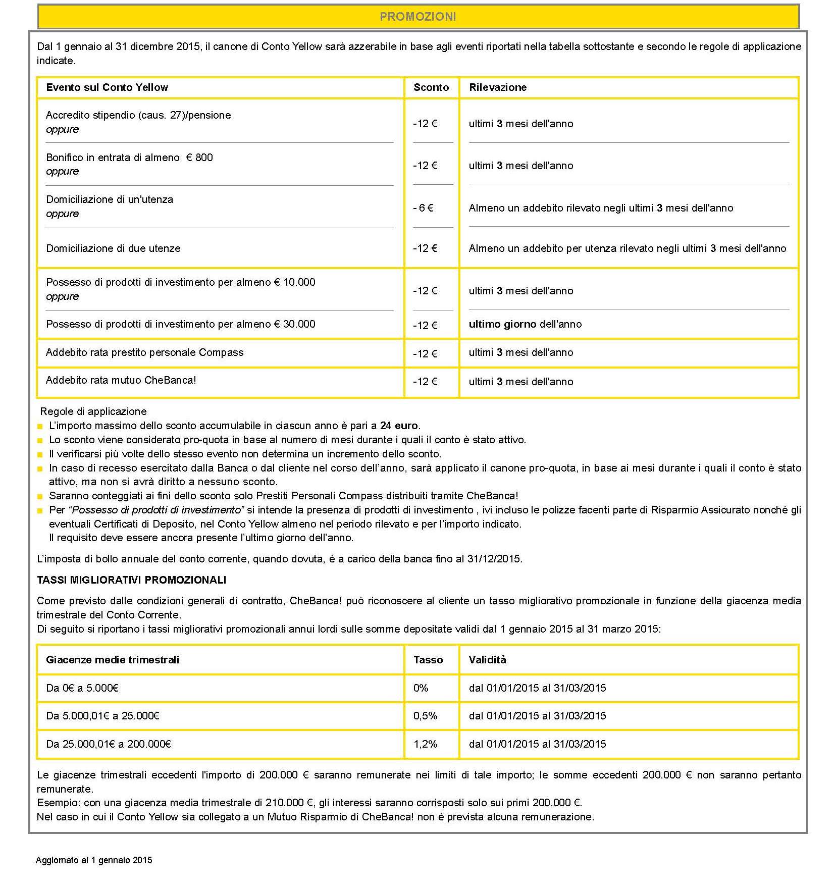 I nuovi tassi promozionali in vigore dal 1 gennaio 2015 al 31 marzo 2015 sono i seguenti: