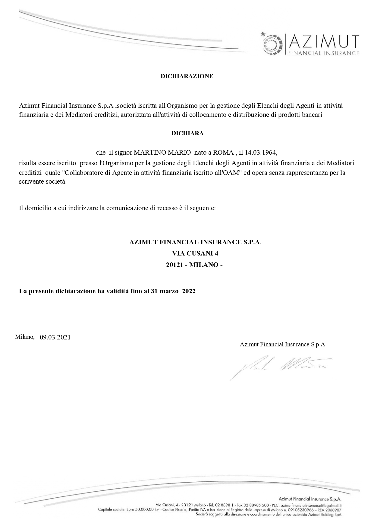 Dal 2012 iscritto ad AICP Associazione Italiana Cultura Previdenziale.